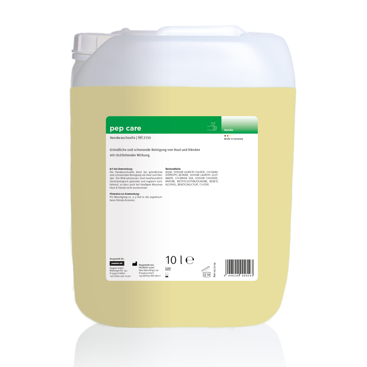 Die pep care Kamille Handwaschseife im angenehmen Kamilleduft bietet eine gründliche und schonende Reinigung für Haut und Hände. Parabenfrei und pflegend spendet sie Feuchtigkeit und hinterlässt ein angenehmes Hautgefühl. Vertrauen Sie auf eine sanfte und effektive Reinigung!