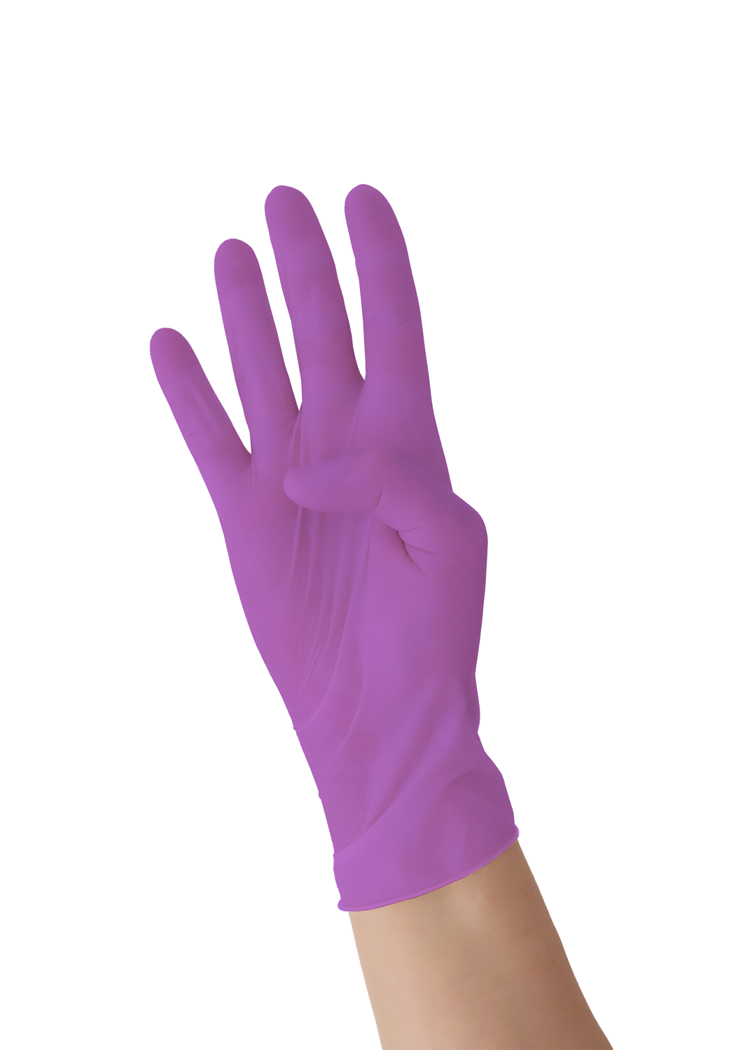 Unsteriler, puderfreier und höchst elastischer medizinischer Einmalhandschuh aus Nitril in lila.