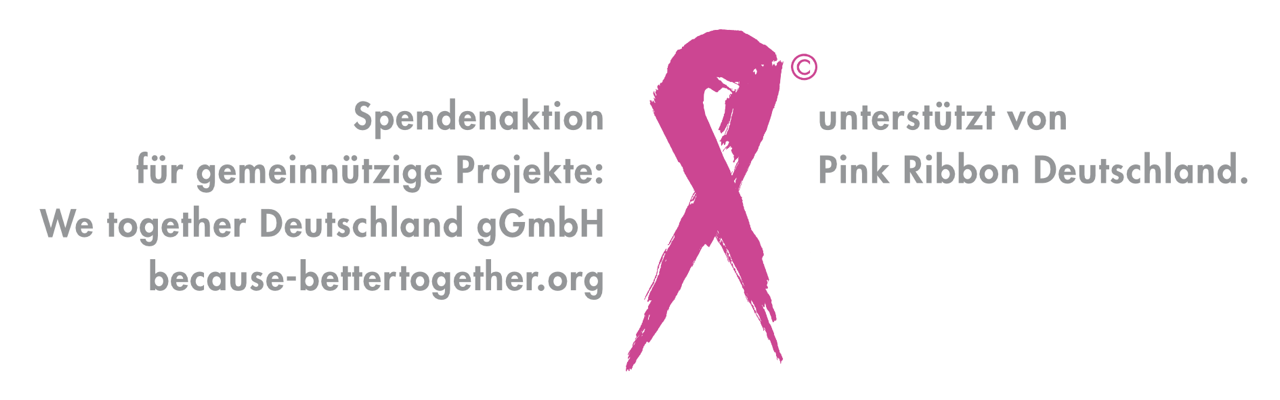 Die Spenden gehen zu 100% an die gemeinnützigen Pink Ribbon Projekte unter dem Motto „bettertogether“. Diese Projekte widmen sich den Bedürfnissen der Menschen im persönlichen Umfeld der Krebspatient*innen. Denn die Diagnose Krebs verändert nicht nur das Leben der Erkrankten, sondern auch das der Angehörigen und Freunde. Die Angebote der Projekte zielen darauf ab, die Betroffenen bei ihren Fragen, Ängsten und Ungewissheiten zu begleiten und zu unterstützen.