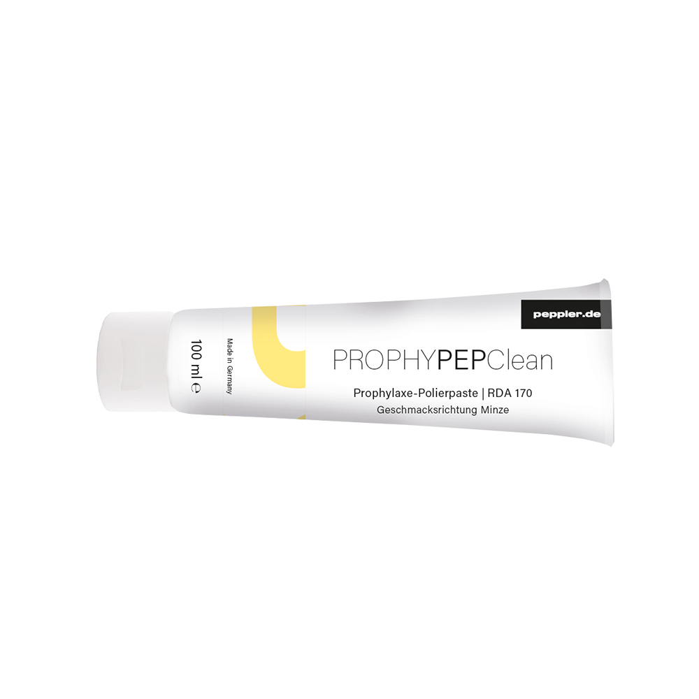Entdecken Sie ProphyPep Clean – unsere Polierpaste für professionelle Zahnreinigung mit verschiedenen RDA-Werte (40/120/170/250) zur schonenden Entfernung von Zahnbelägen und Verfärbungen.